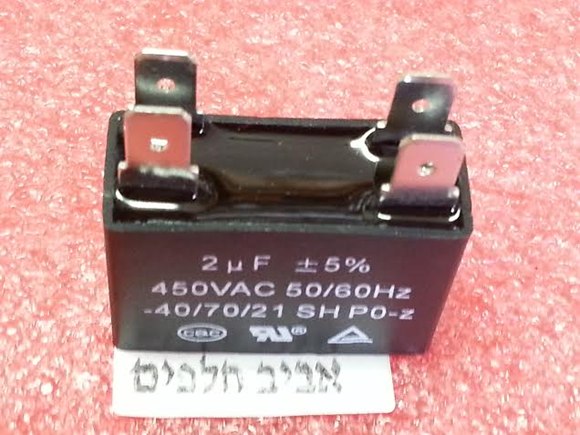 קבל 2MF למנוע מאורר מזגני אלקטרה , תדיראן ועוד מזגנים מקט 014140